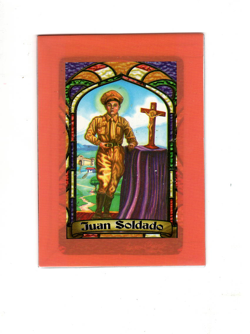 Incluye una imagen y una oración al reverso para Juan Soldado en funda magnética de vinilo. Juan Soldado Prayer card (spanish only) in Magnetic sleeve. Color of sleeve may vary.